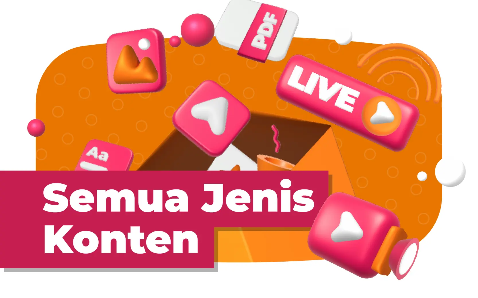 Dari jenis konten berbentuk video, dokumen dalam berbagai format yang bisa kamu baca, dan bentuk aset digital lainnya dalam berbagai format yang langsung bisa kamu gunakan, sampai melakukan interaksi langsung melalui sesi live.